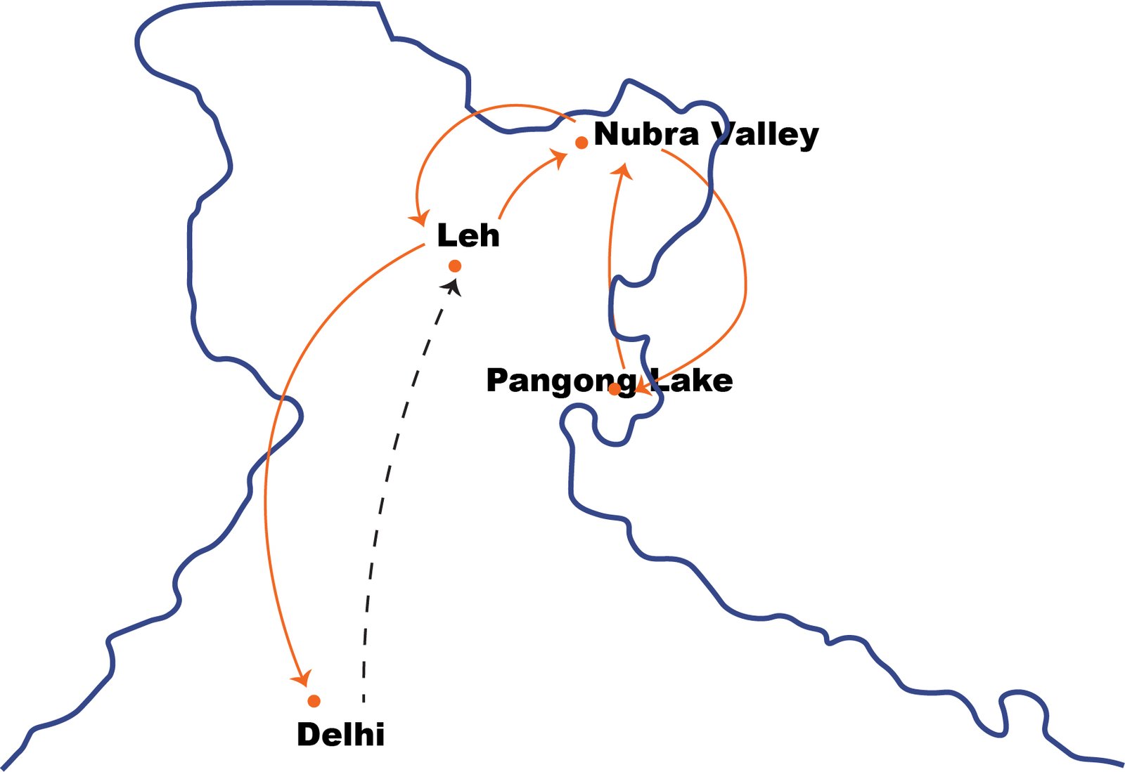 Delhi - Leh - Nubra (via Khardung La Pass) - Pangong Lake - Nubra - Leh (via Chang La Pass) - Delhi