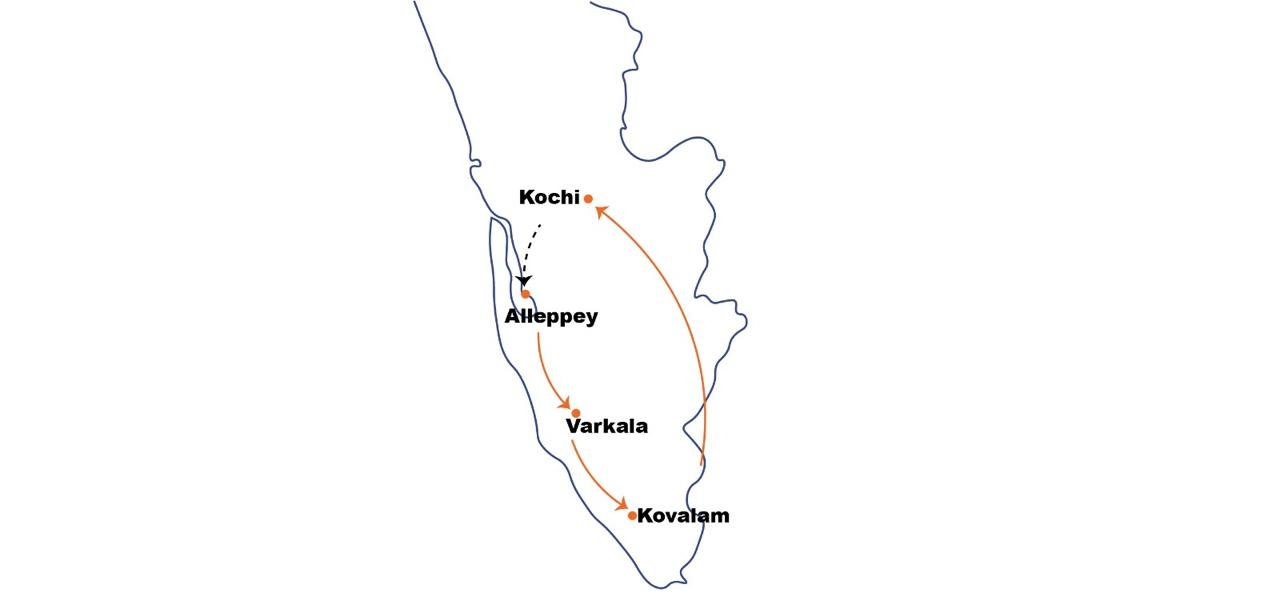 Kochi - Alleppey - Varkala - Kovalam
