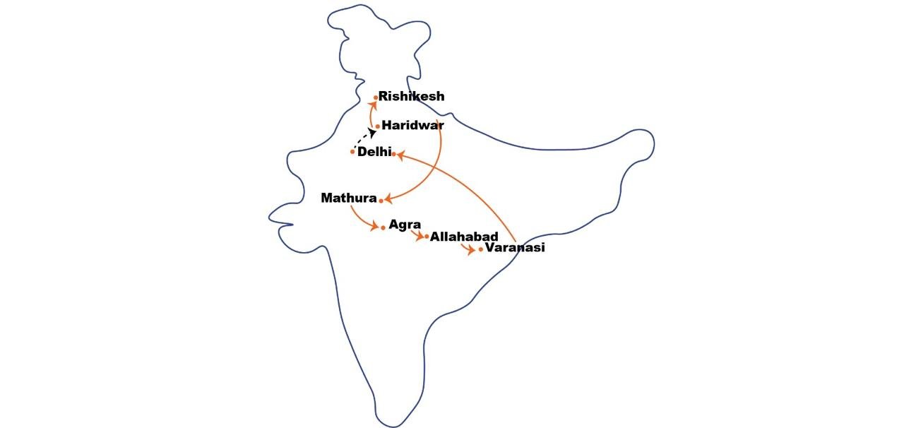 Delhi - Haridwar - Rishikesh - Mathura - Agra - Allahabad - Varanasi - Delhi