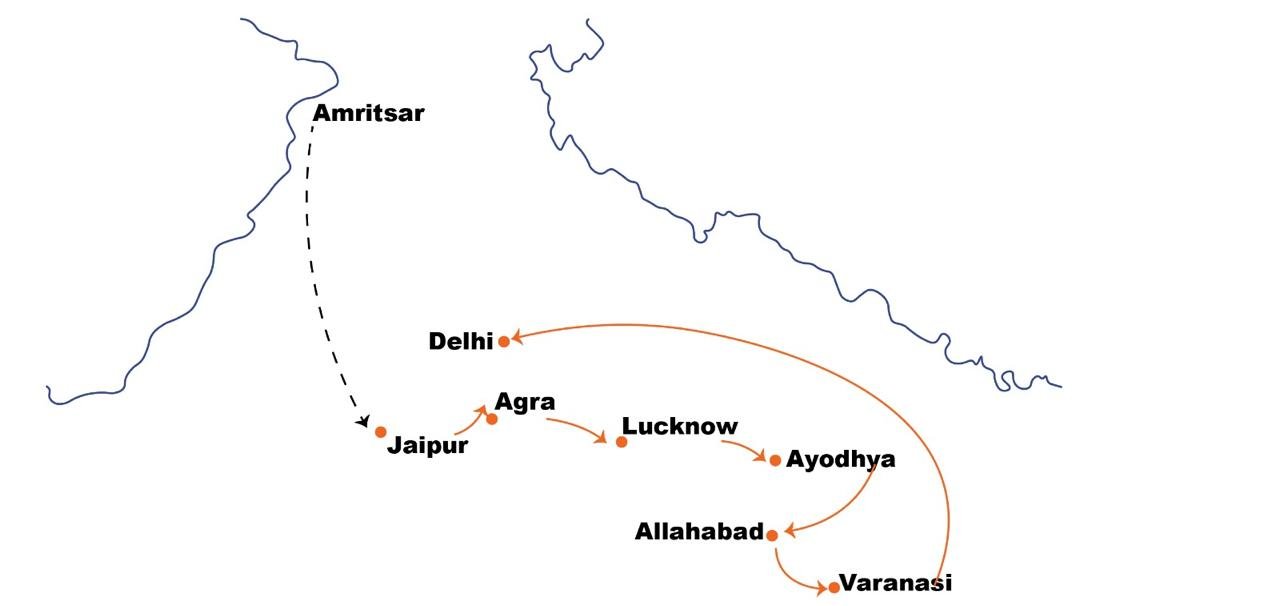 Amritsar - Jaipur - Agra - Lucknow - Ayodhya - Allahabad - Varanasi - Delhi