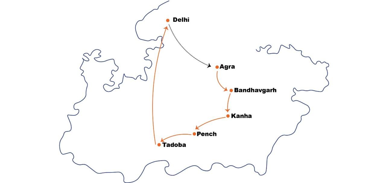 Delhi - Agra - Bandhavgarh - Kanha - Pench - Tadoba - Delhi